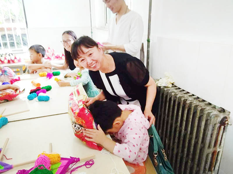 志愿者和孩子們一起做手工