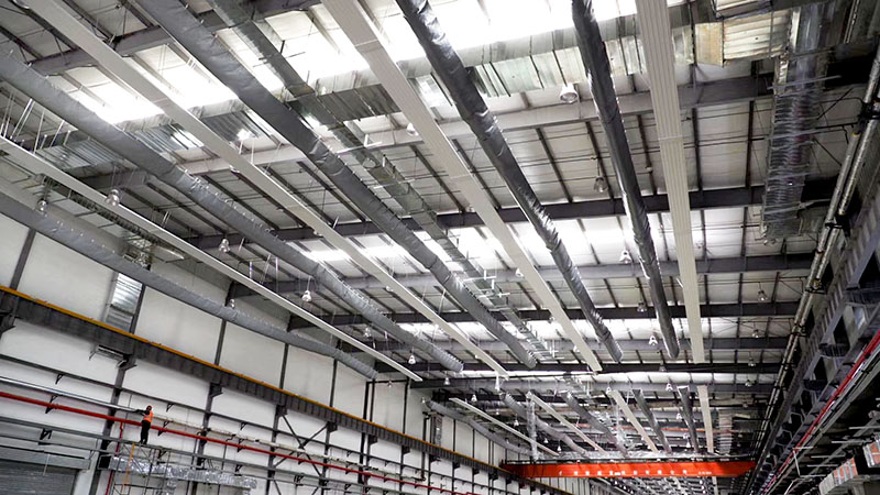 12000平米丹麥艾爾姆天津工廠幾千個快裝接口,康平輕量化裝配式銅鋁復合輻射板輕松通過水系統(tǒng)打壓實驗