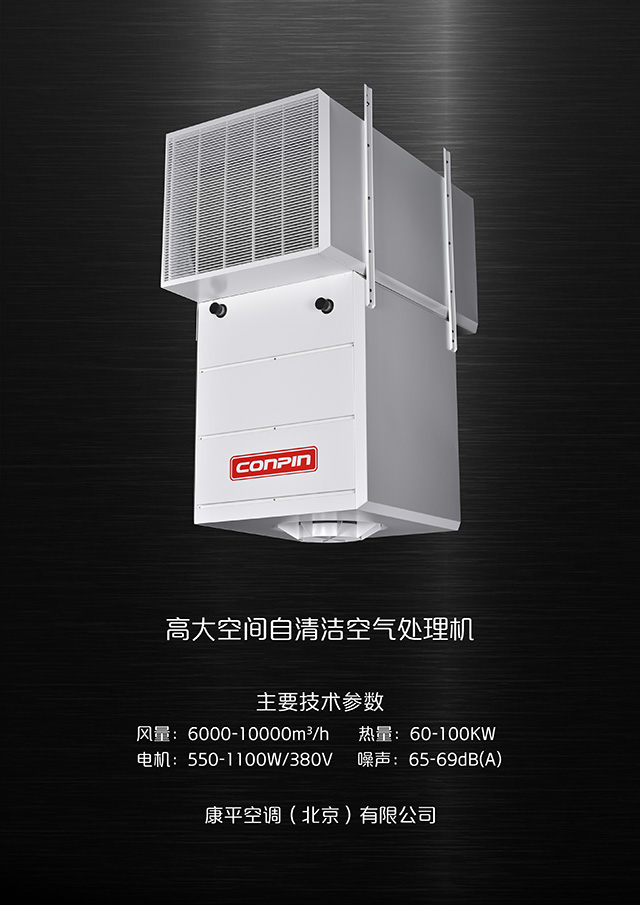 康平進(jìn)風(fēng)自清潔高大空間空調(diào)機(jī)組,安裝高度6~30米,適合大型工業(yè)廠房、體育館、商業(yè)中心及飛機(jī)、地鐵、機(jī)車維修基地等場(chǎng)所。