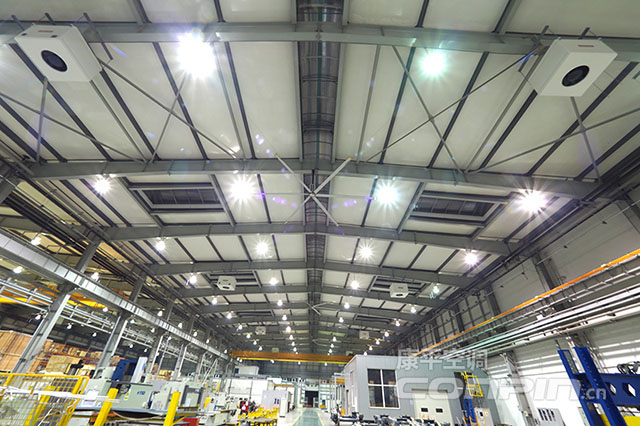 康平冷暖型高大空間專用空調(diào)采取建筑空間頂部進(jìn)風(fēng),吸收上部空間空氣,通過(guò)盤(pán)管二次交換后,垂直送入作業(yè)空間,出風(fēng)擴(kuò)散面積隨意可調(diào),減少室內(nèi)溫差梯度,解決傳統(tǒng)高大空間建筑上下空氣溫度不均、能源損耗大的弊端。可根據(jù)需求恒溫控制室內(nèi)溫度和開(kāi)啟關(guān)閉時(shí)間,節(jié)省能量消耗。