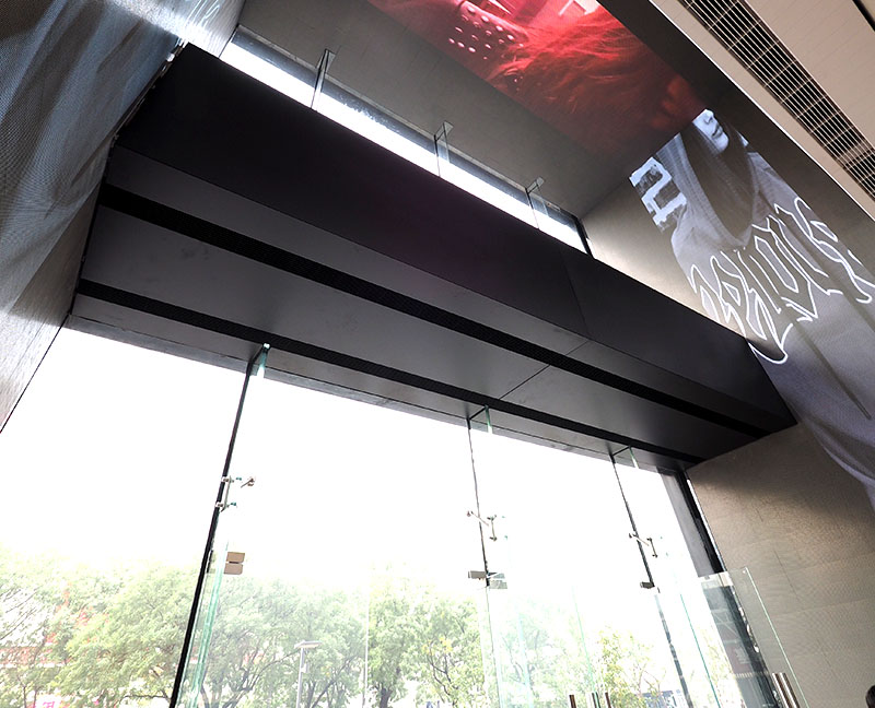 選用產(chǎn)品:頂吹電熱風(fēng)幕,頂吹空氣幕,頂吹冷暖風(fēng)幕,