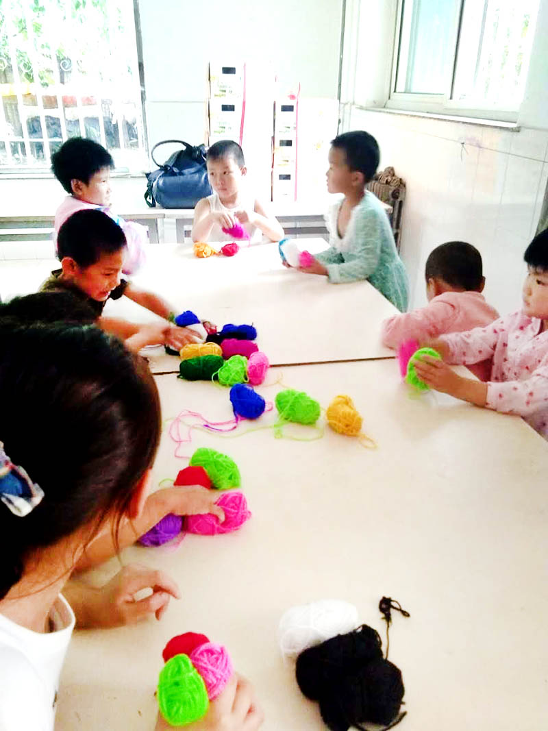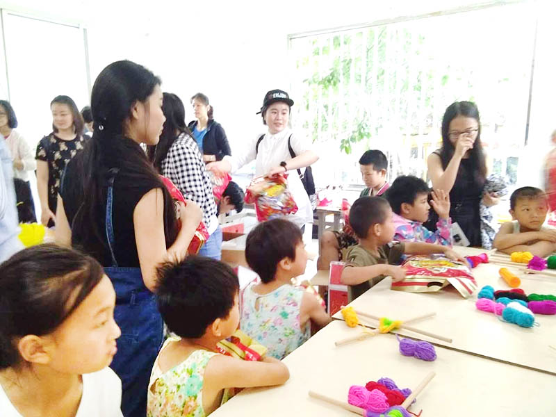 志愿者和孩子們一起做手工